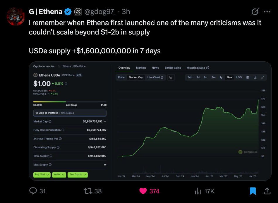 In a sense, this is the market opportunity that Ethena is here to capture. And so far, they have been doing an extremely good job at it.