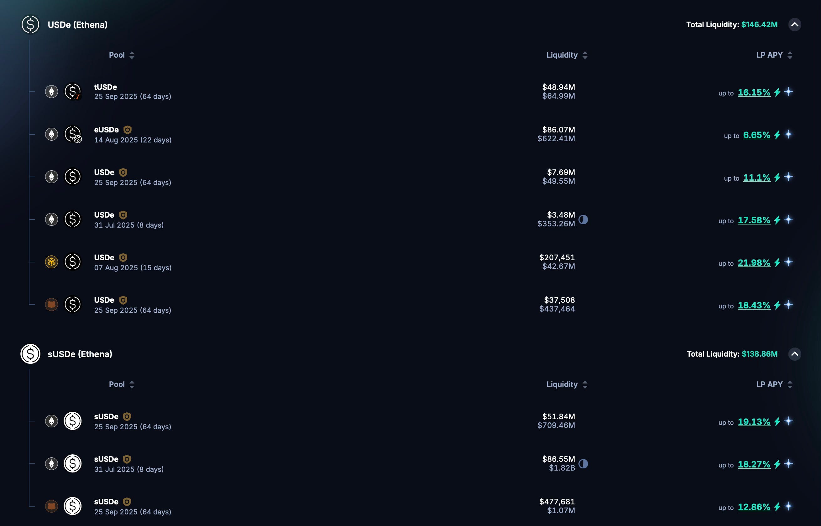 eUSDe is also usable across DeFi. For example, you can LP with it on Pendle - meaning you get yield, points, and future exposure.