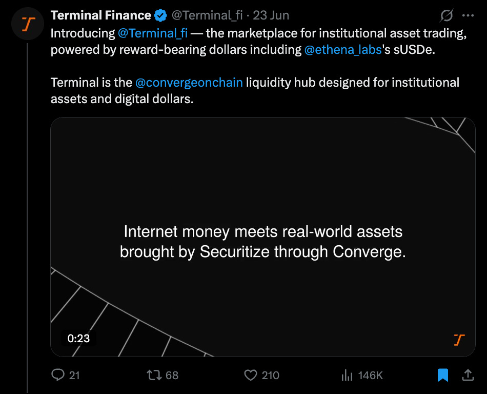 Terminal will be the primary liquidity hub for Converge, the new chain from Ethena and Securitize, built to connect TradFi, DeFi, and CeFi.