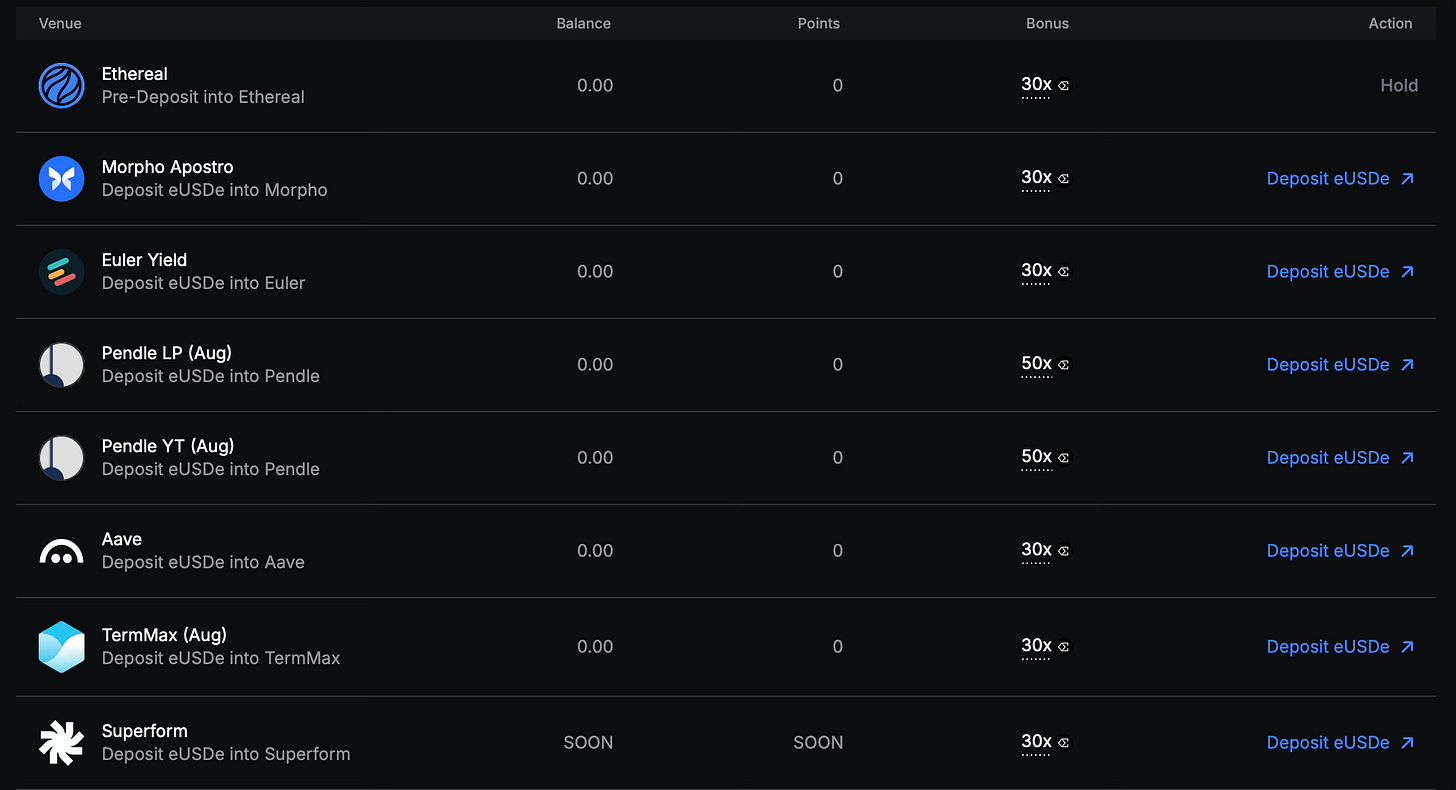 pUSDe earns points from Ethena, Ethereal, and Strata, and can be deployed into DeFi - making it a high-leverage play for users already holding USDe.