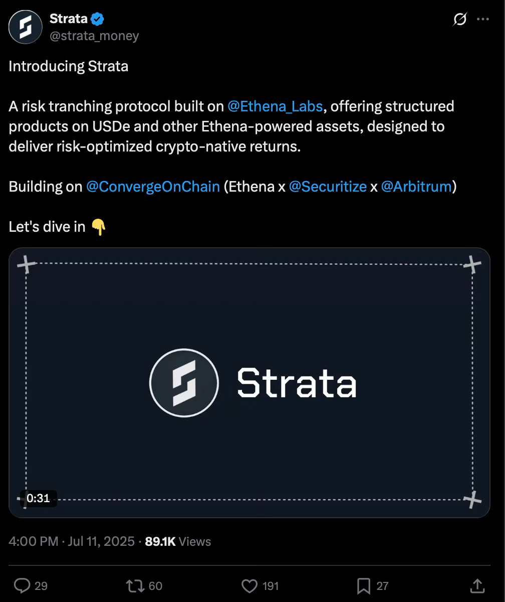 Strata is a perpetual yield tranching protocol designed to offer structured yields on USDe.