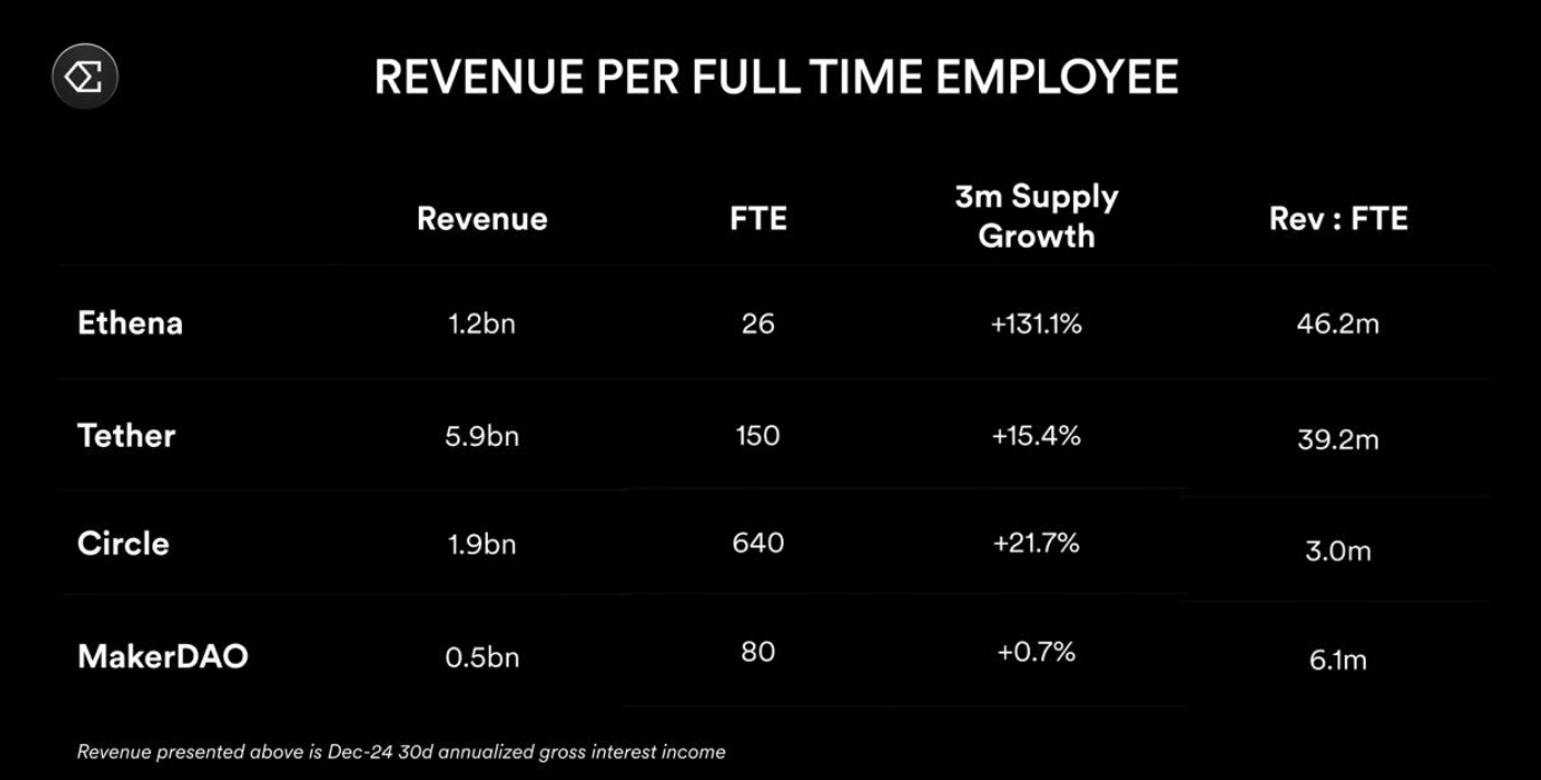 According to recent data, Ethena generates an average of $46.2M in revenue per full-time employee - which is massive.