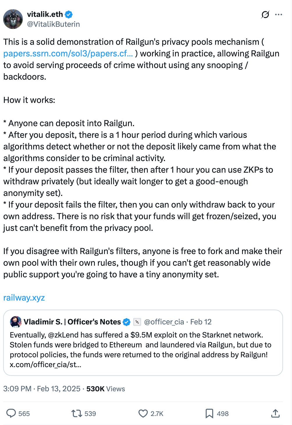 Another important point is that Railgun has a built-in anti–money laundering mechanism, which helps ensure the protocol isn’t used for illicit activity. This is a key feature that makes it even more legit.