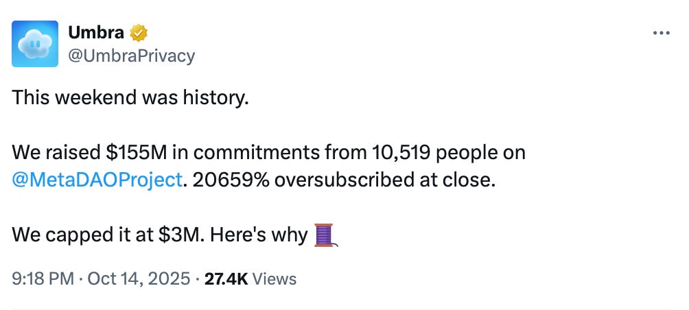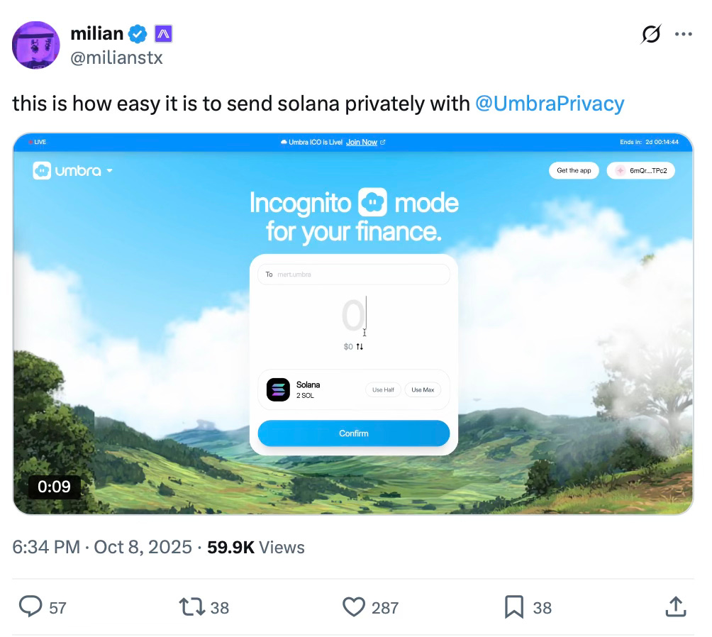 Umbra is another privacy-focused crypto project that recently gained significant traction after its historic ICO on MetaDAO.