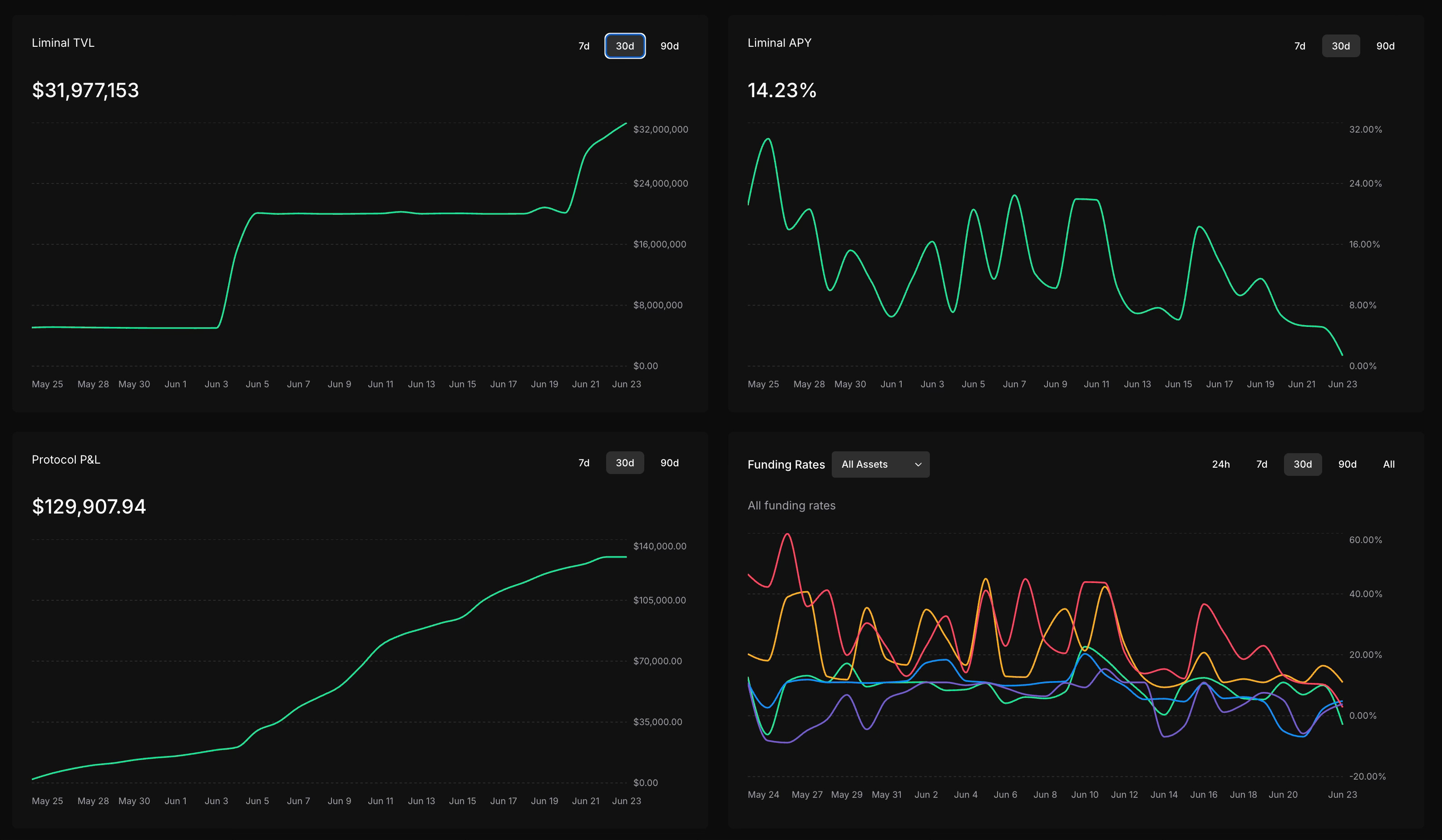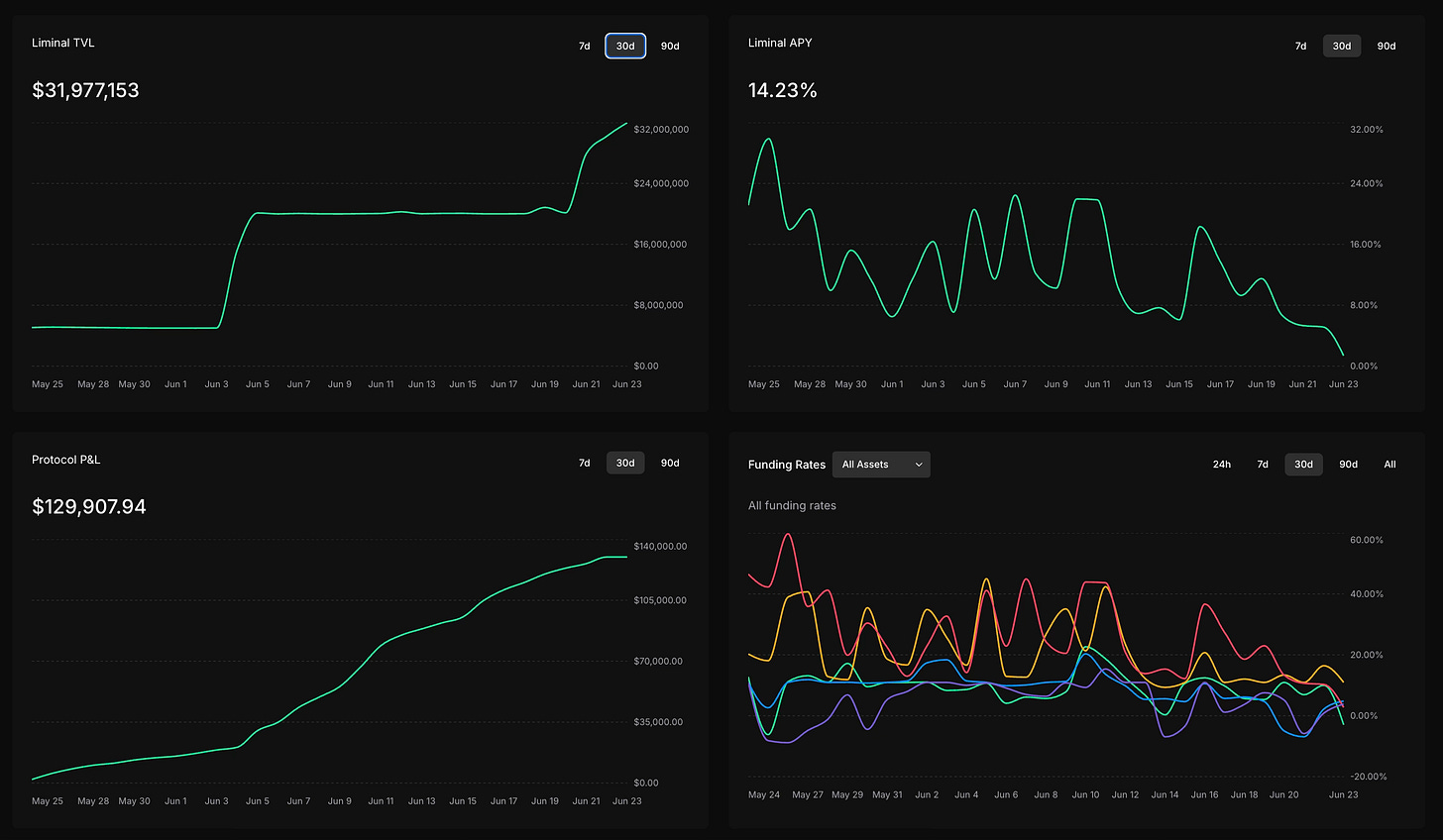 Liminal handles everything: it opens positions, optimizes entries, rebalances in real-time, and manages risk to avoid liquidations. There’s a live dashboard to track performance. The UX is clean and intuitive. You can withdraw funds at any time - no waiting, no deposit or withdrawal fees. The only fee is a 10% performance fee on the net funding you earn.