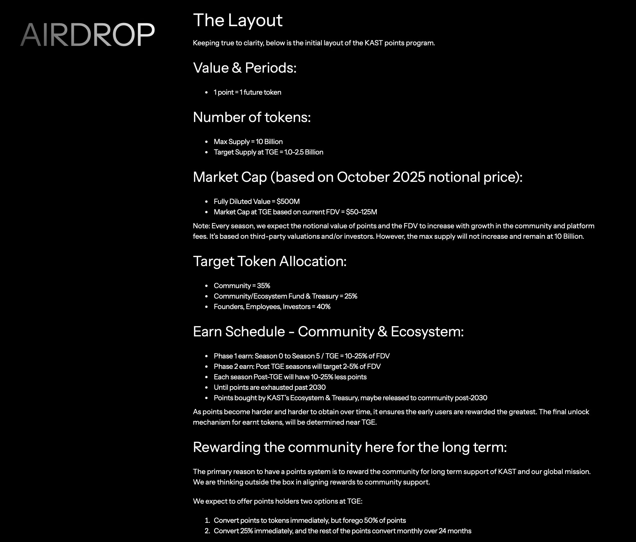 They also launched a points program: you earn points when you spend, and it’s fully transparent how these convert to tokens. Assuming a $500M FDV at TGE, cashback ranges from 5–15% depending on your card tier.