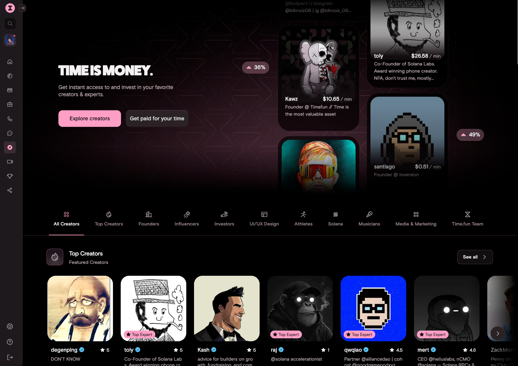 time.fun is pre-token and they have a points system, so it is worth playing around and even buying some minutes of people that you like. Maybe there is a founder you would like to DM, or a trader that you would like to ask a question.
