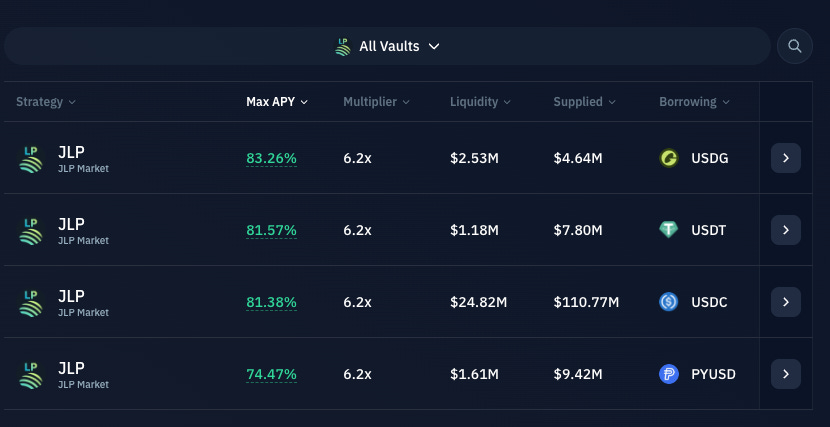 With SOL moving up again recently, JLP has been doing very well, and Kamino helps you amplify that yield via multiply.