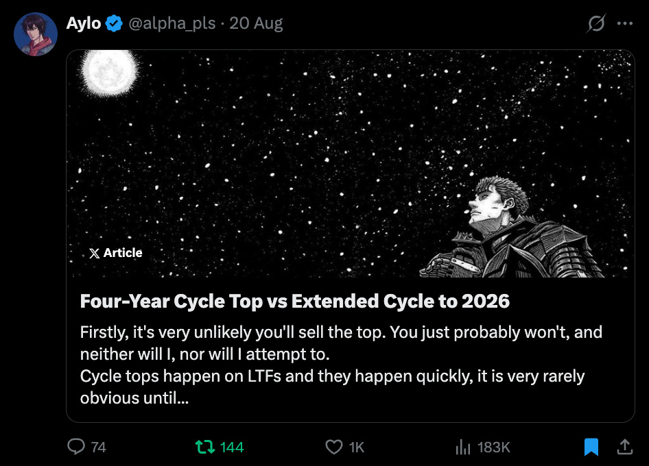 Four-Year Cycle Top vs Extended Cycle to 2026.