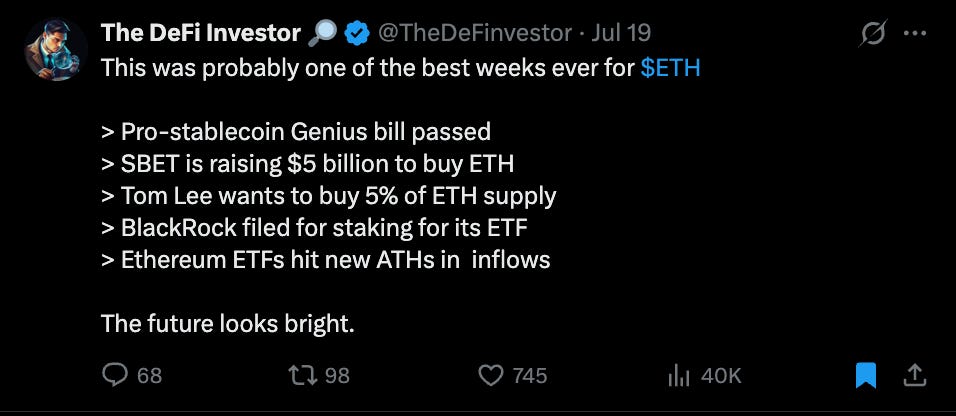 5 Alpha Tweets - One of ETH's best weeks, Bitcoin thesis to retire your bloodline & More