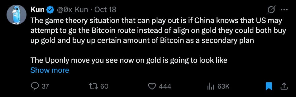 Interesting thoughts on China, gold and Bitcoin.