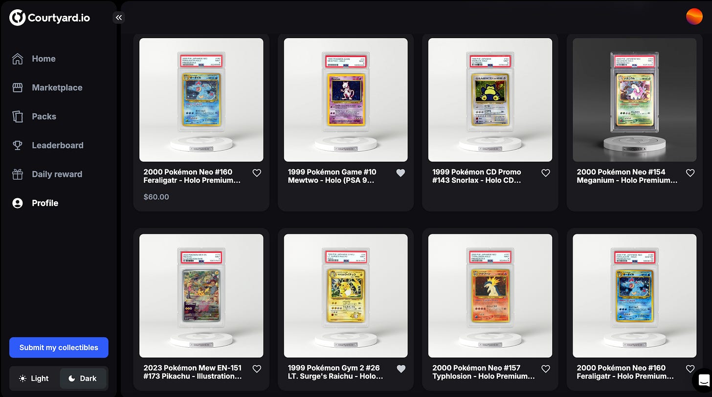 With Courtyard, you can also buy and sell graded cards in the marketplace. You can redeem your slabs whenever you want, but will need to pay some fees to do so.