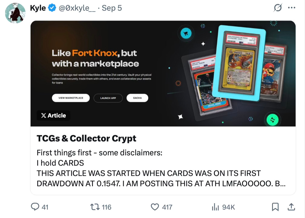 I’ll leave you with this article from Kyle for a deeper dive into CollectorCrypt and $CARDS.